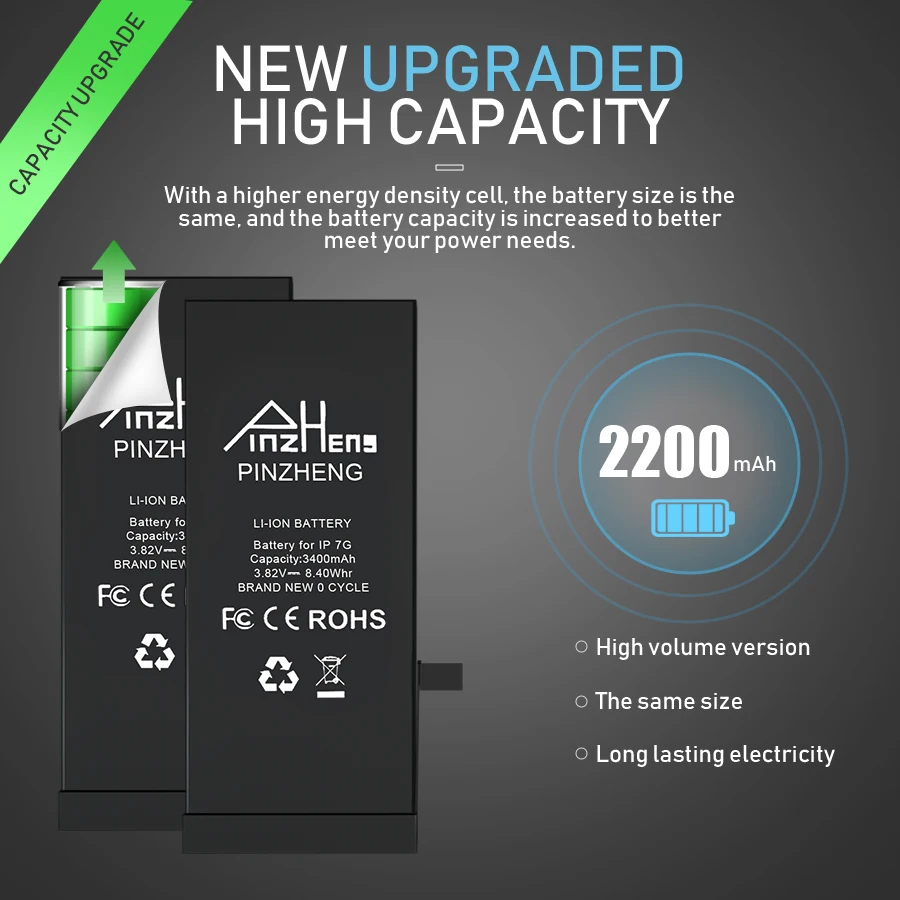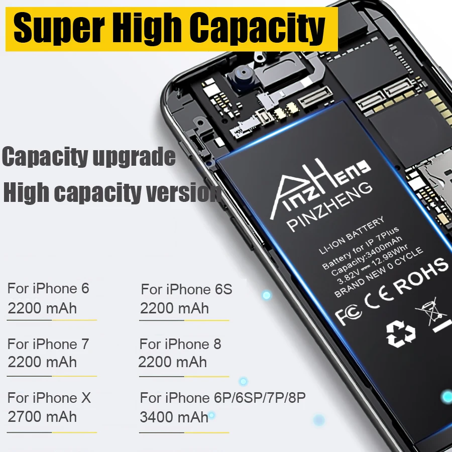 Hot Sale PINZHENG High Capacity Battery For iPhone 6 6S 7 8 Plus X Replacement Bateria For iPhone 7 8 6 6S P