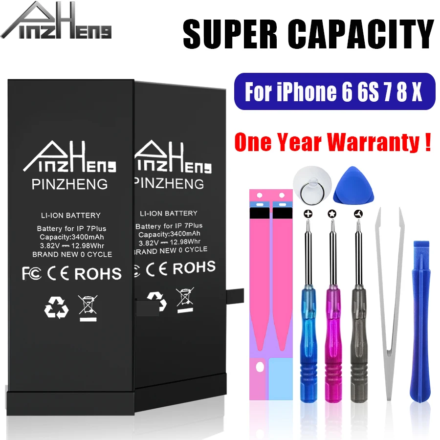 Best Product PINZHENG High Capacity Battery For iPhone 6 6S 7 8 Plus X Replacement Bateria For iPhone 7 8 6 6S P