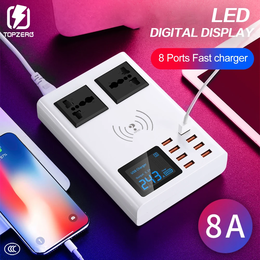 Buy Now 8 Ports Wireless Charger Led Digital Display USB Charger For Android iPhone Adapter Phone Fast Char