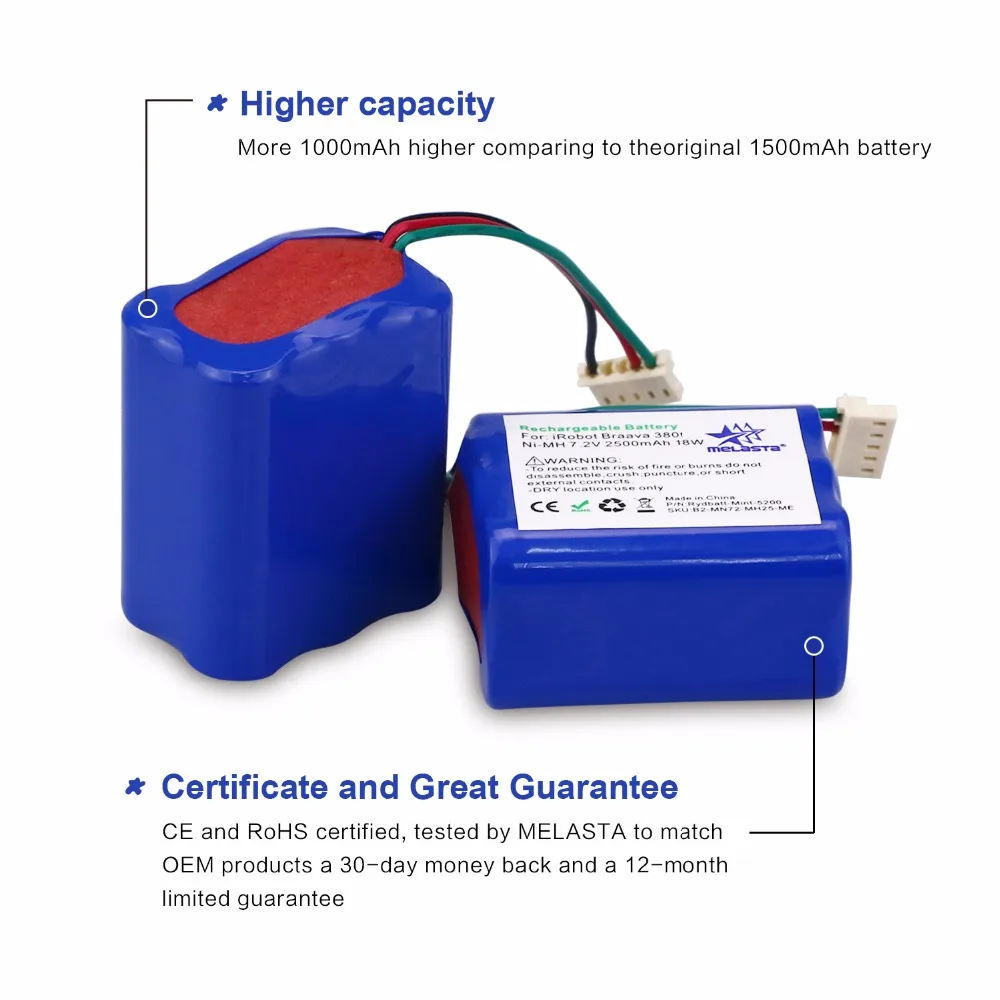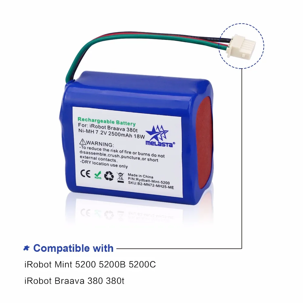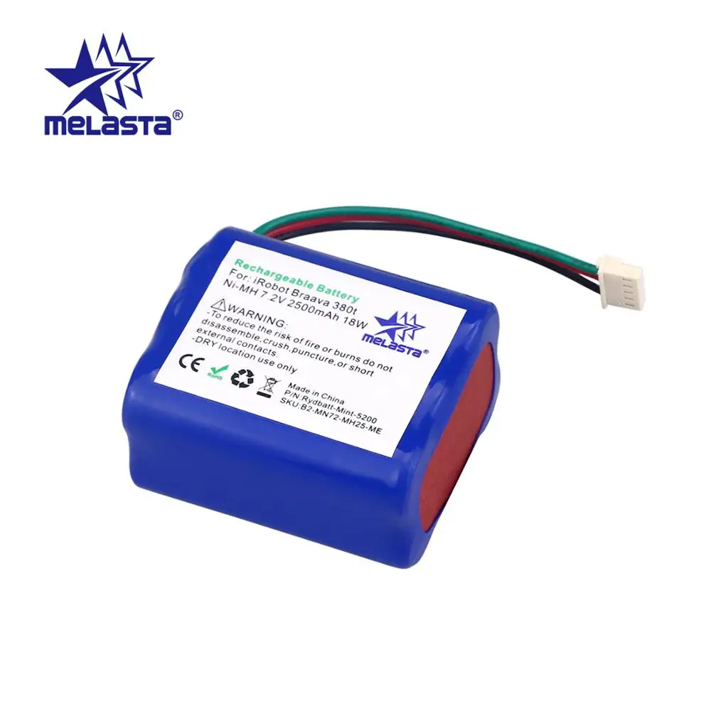 Hot Sale MELASTA 7.2V 2500mAh NiMH Replacement Battery for iRobot Roomba Mint 5200 5200C Braava 380 380t 380