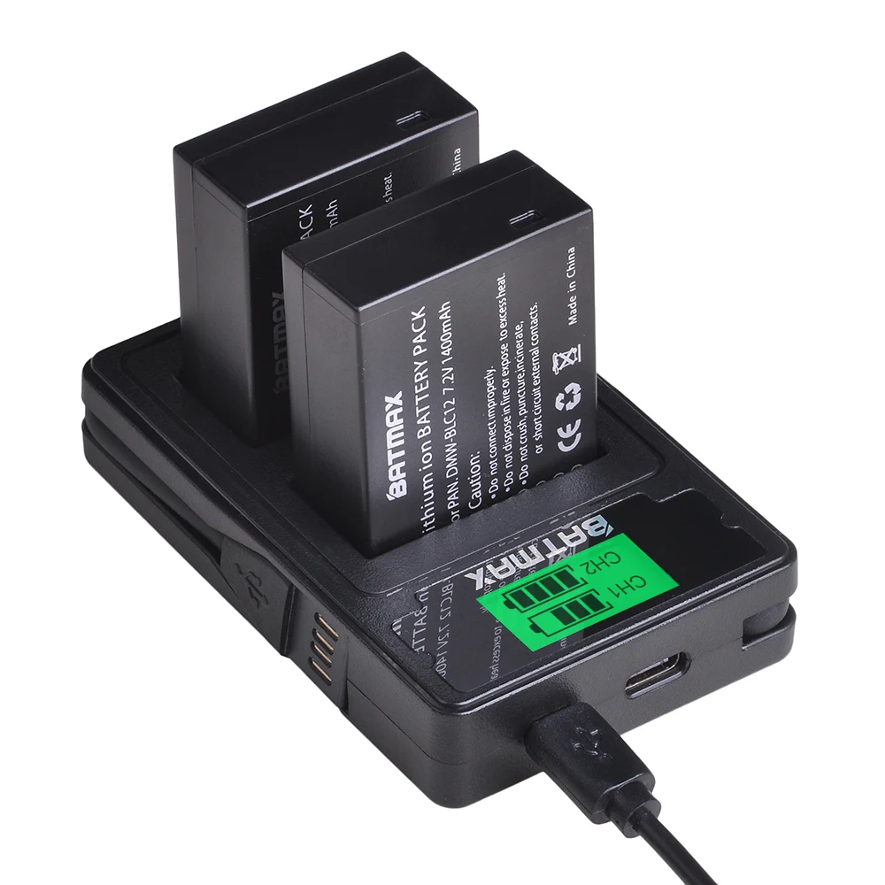 2Pcs DMW-BLC12 DMW-BLC12E BLC12 Battery + USB LCD Charger for Panasonic Lumix DMC-FZ200,FZ300,FZ1000,FZ2500,G5,G6,G7,GX8,G85