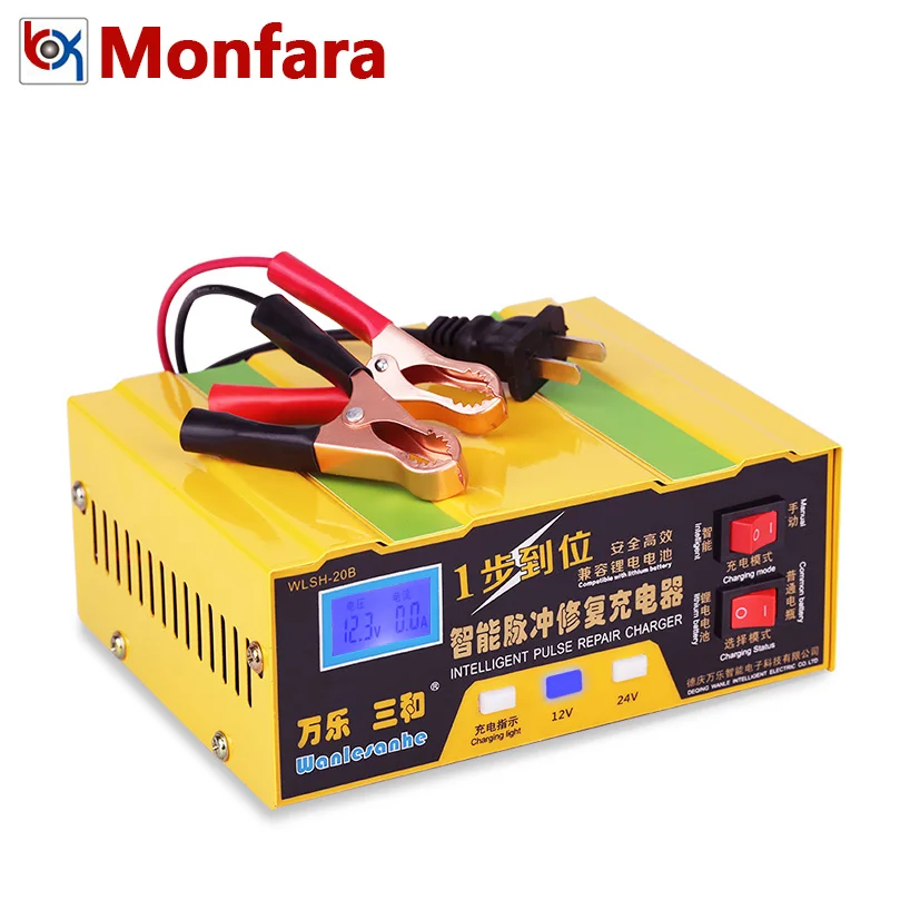 MONFARA 12V 24V Car Battery Charger Full Automatic Intelligent Pulse Repair 10A 12 24 V 100AH LED Auto Motorcycle Lead Acid GEL