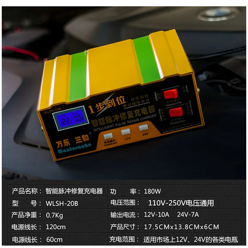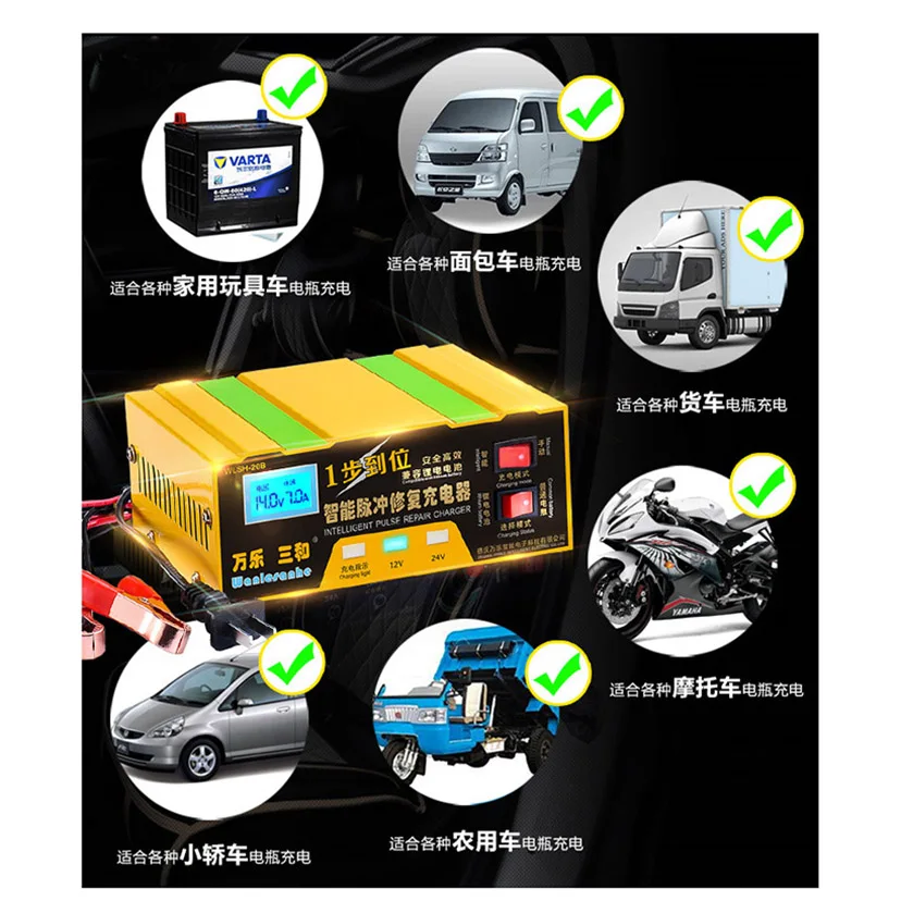 12V 24V Car Truck Motor Lead Acid GEL AGM GEL Battery Full Automatic Charger Intelligent Pulse Repair Type Charging 12 24 V Volt