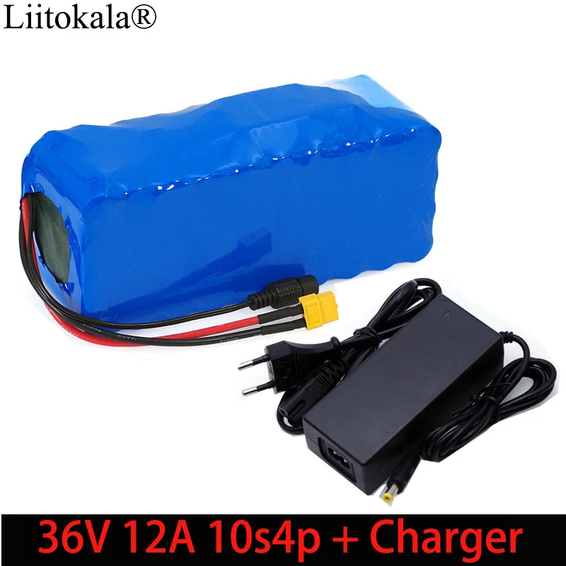 Liitokala 36V 12Ah 18650 Lithium Battery pack High Power 12000mAh Motorcycle Electric Car Bicycle Scooter with BMS+ 2A Charger