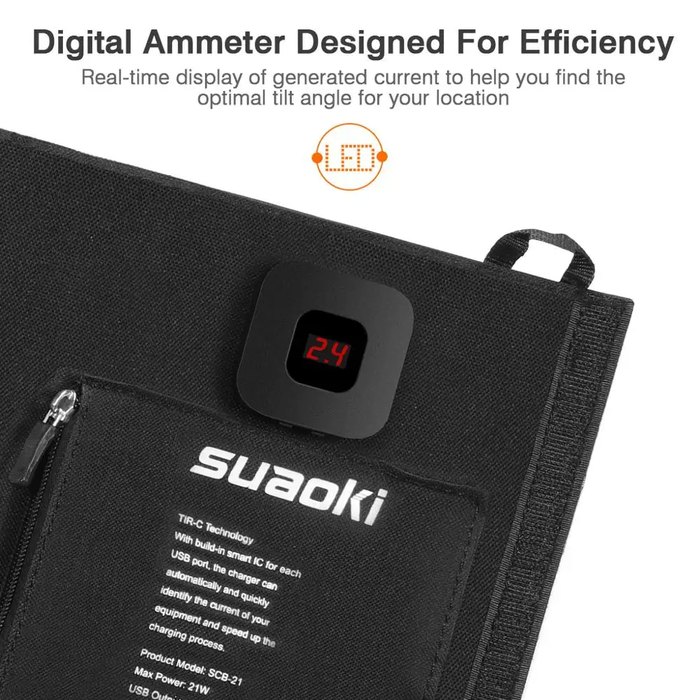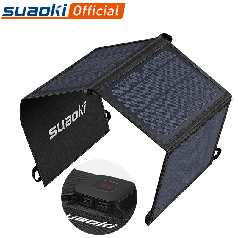Best Seller Suaoki 21W Solar Panel Charger Battery Foldable Waterproof Sun Energy LED Display Dual USB 5V/4A Ou