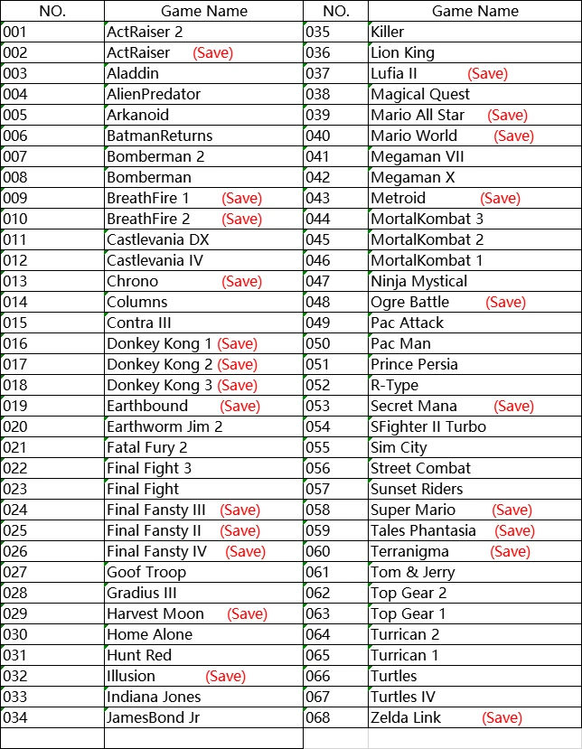 Super 110 in 1 Battery Save Game file Cartridge Chrono Trigger Zeldaed a link to the Past Soul Blazer Super Marioed World Turtle
